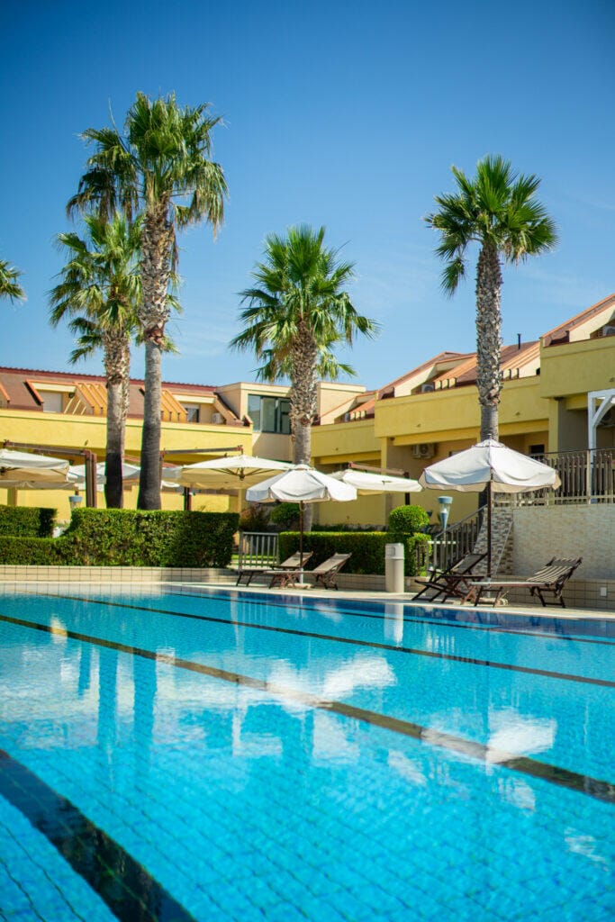 Un’ampia piscina non solo per tuffarsi e godere di un fresco e delizioso drink, ma anche per festeggiare il tuo evento importante.